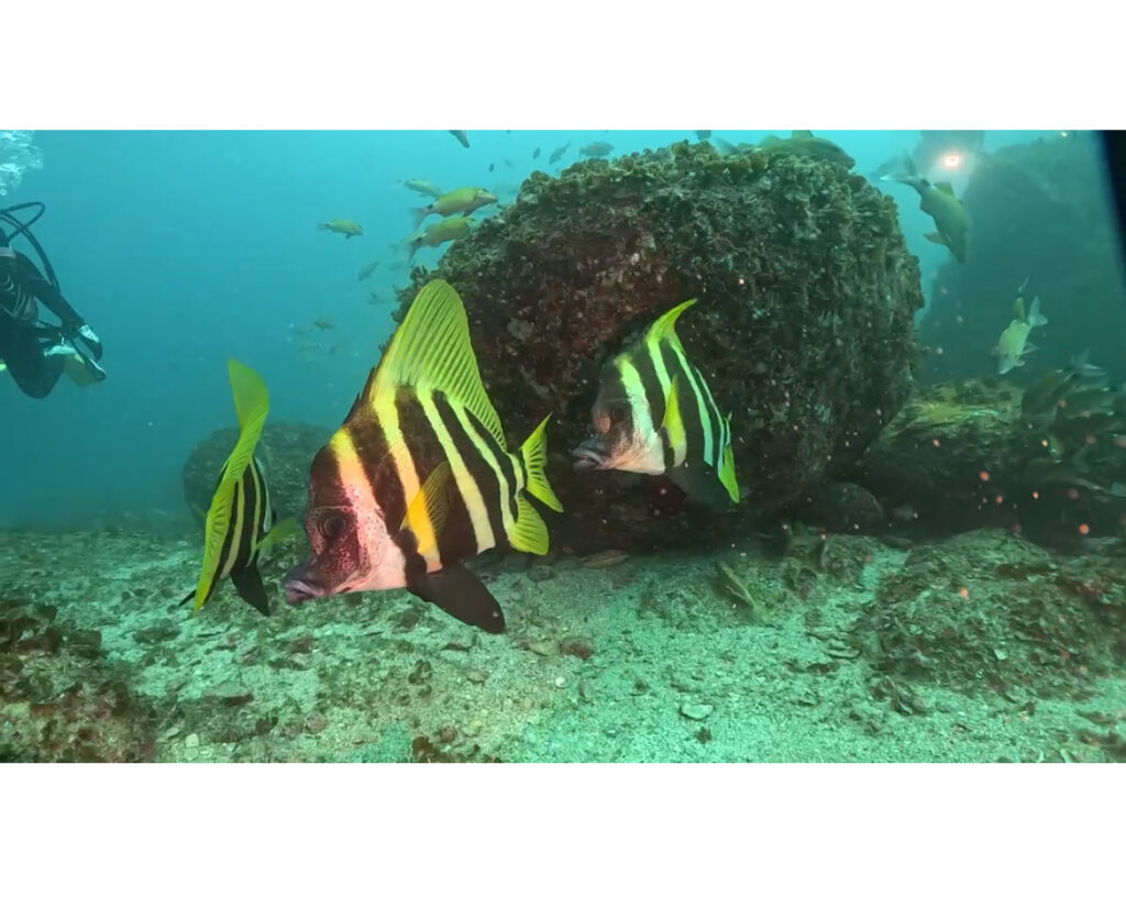 カゴカキダイも群れてたり阪神カラーの魚がとにかくフレンドリーでした!